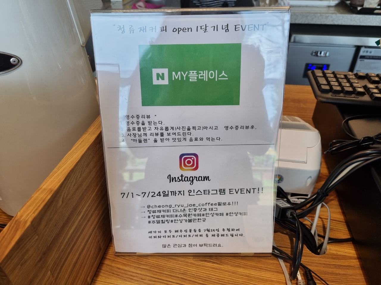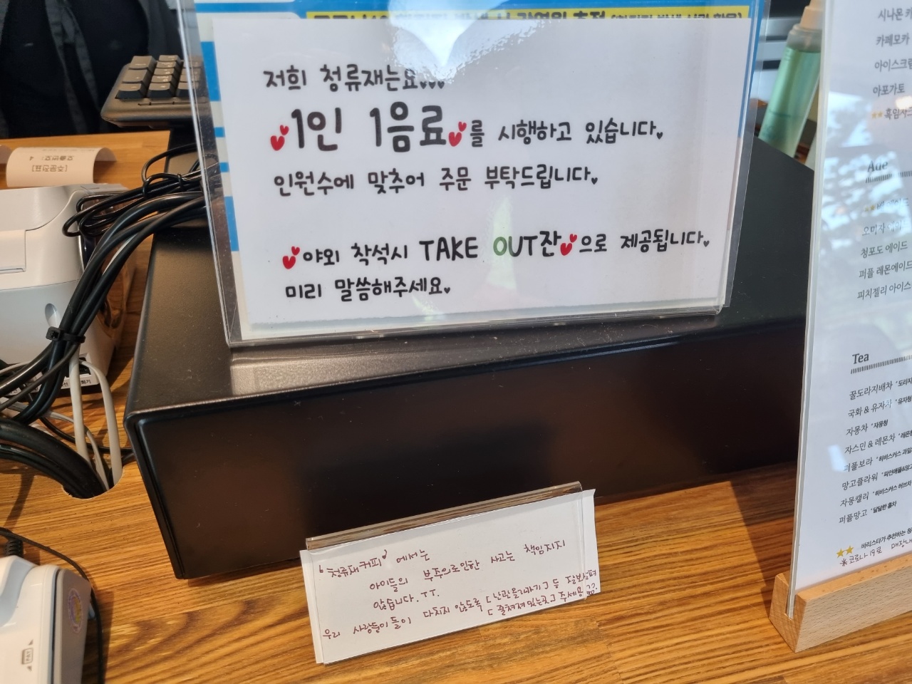 그리고 청류재커피는 1인 1음료를 시행하고 있어