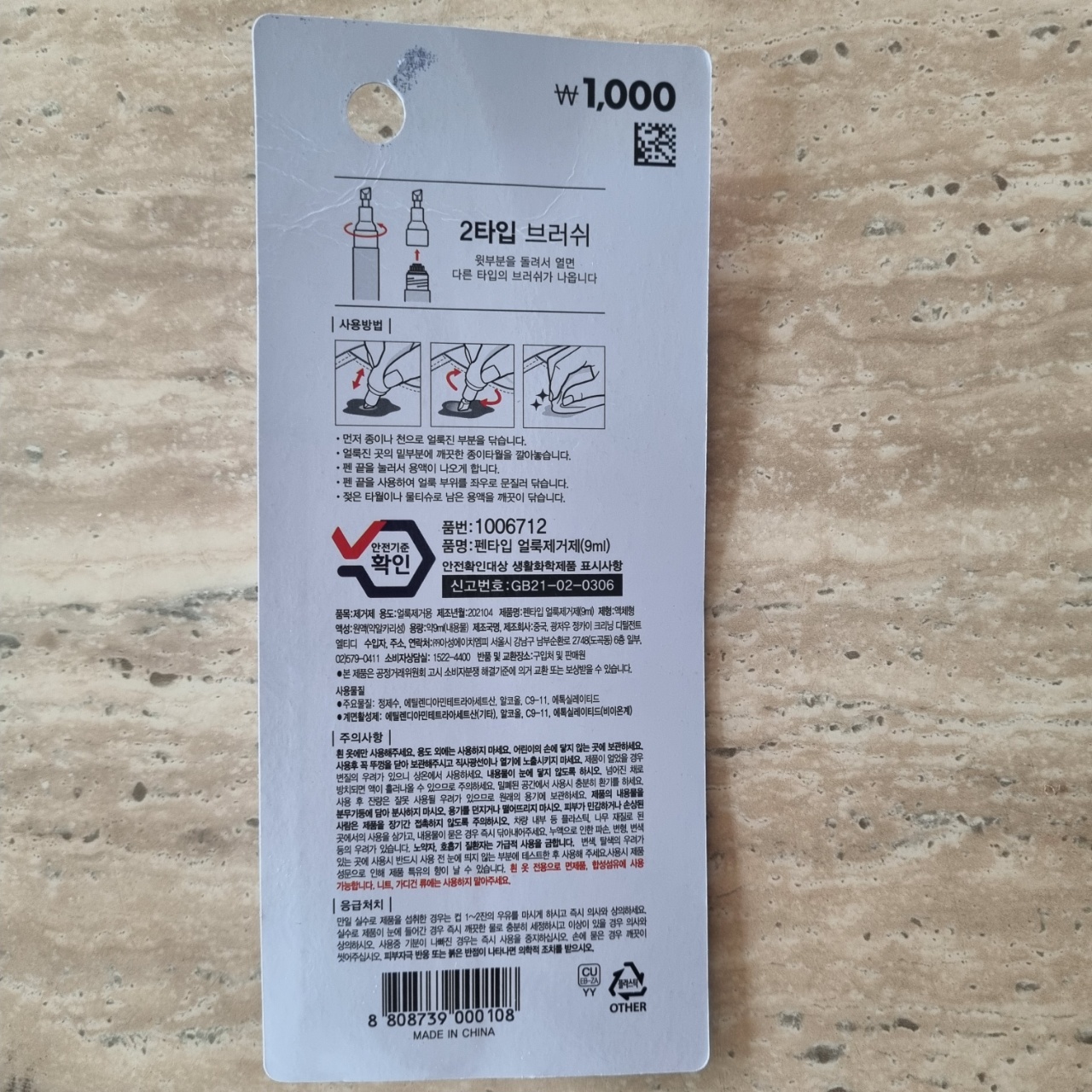 다이소에서 흰옷전용 얼룩제거펜으로
