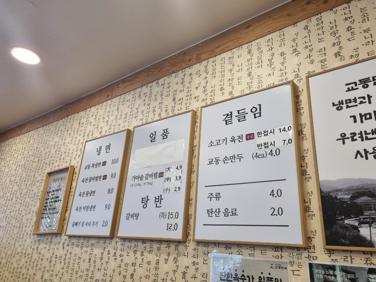 그럼 교동면옥의 메뉴를 살펴볼까요?