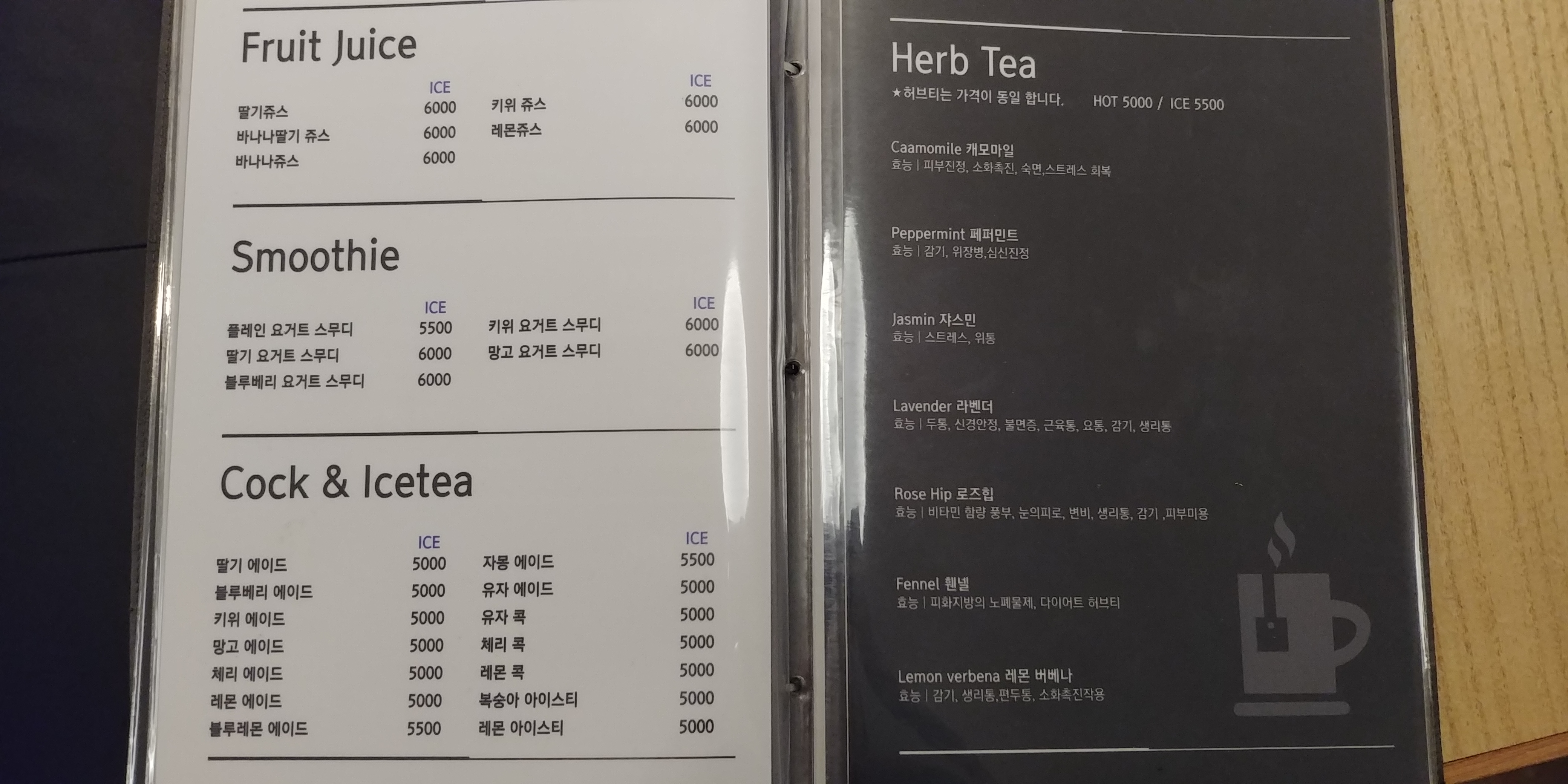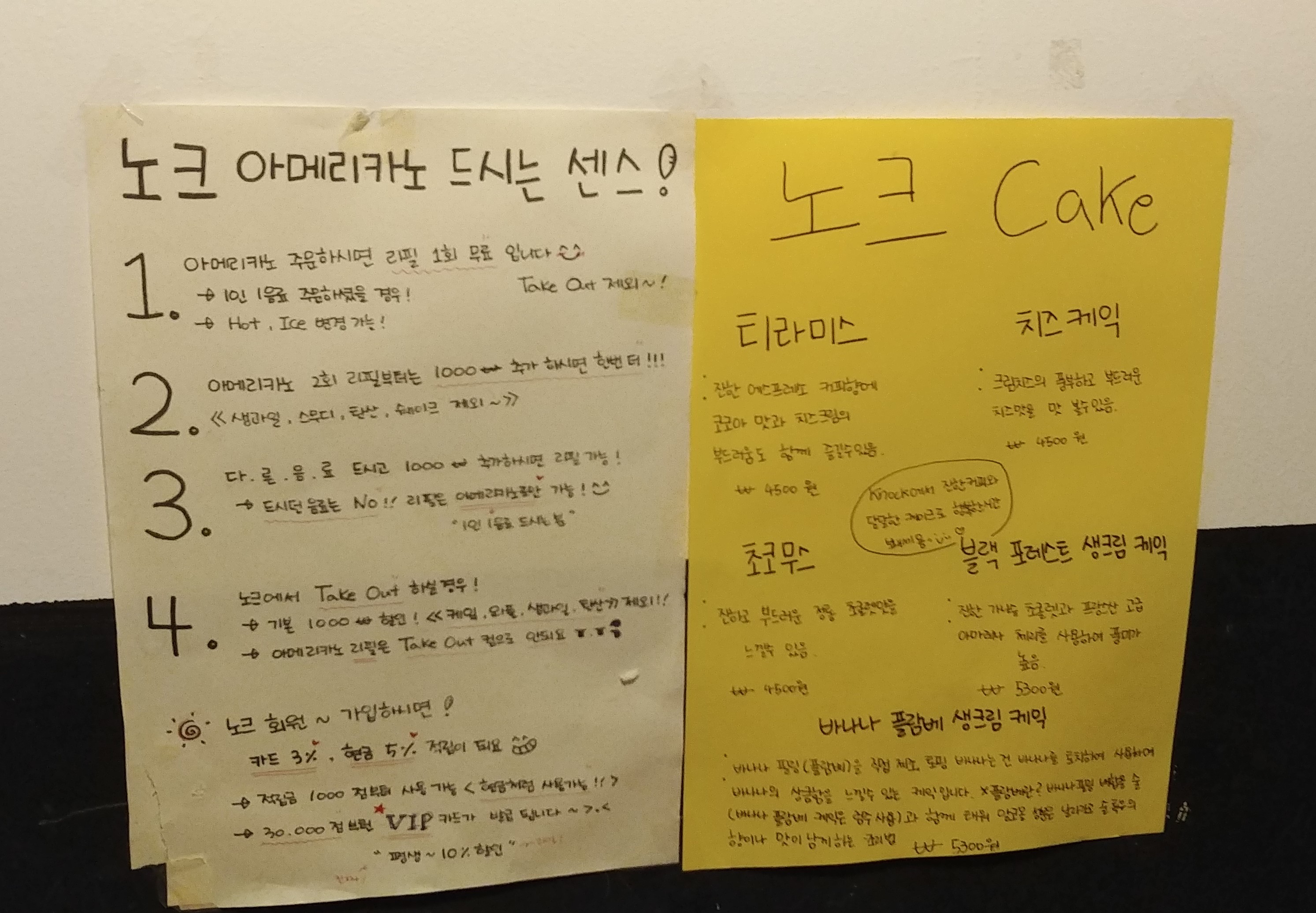 ▶ 이제 노크 카페의 메뉴판, 보실게요!