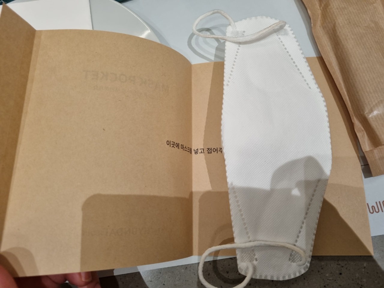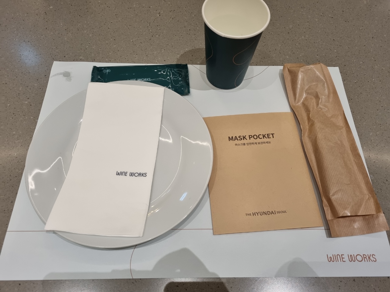 접시와 물티슈, 수저, 그리고 마스크 포켓이