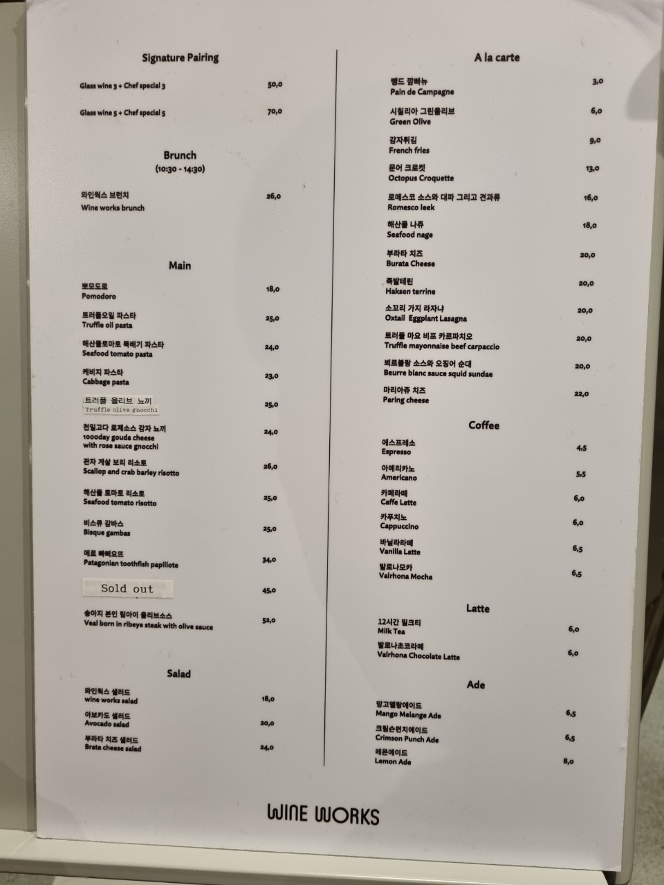 이제 더현대서울 와인웍스 메뉴를 살펴볼게요!