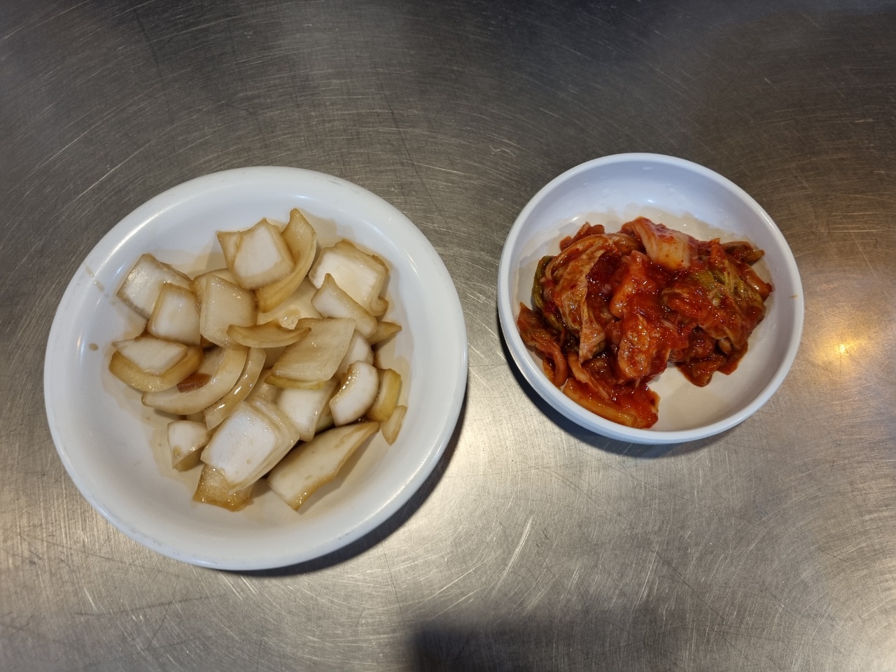 양파 장아찌와 김치가 세팅되구요~!