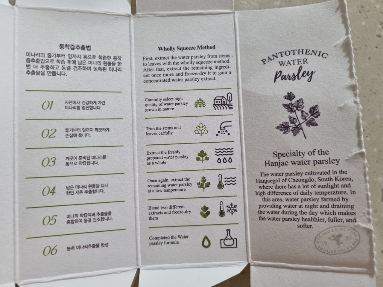 미나리 에센스 병에 적힌 소개글을 살펴보자면!