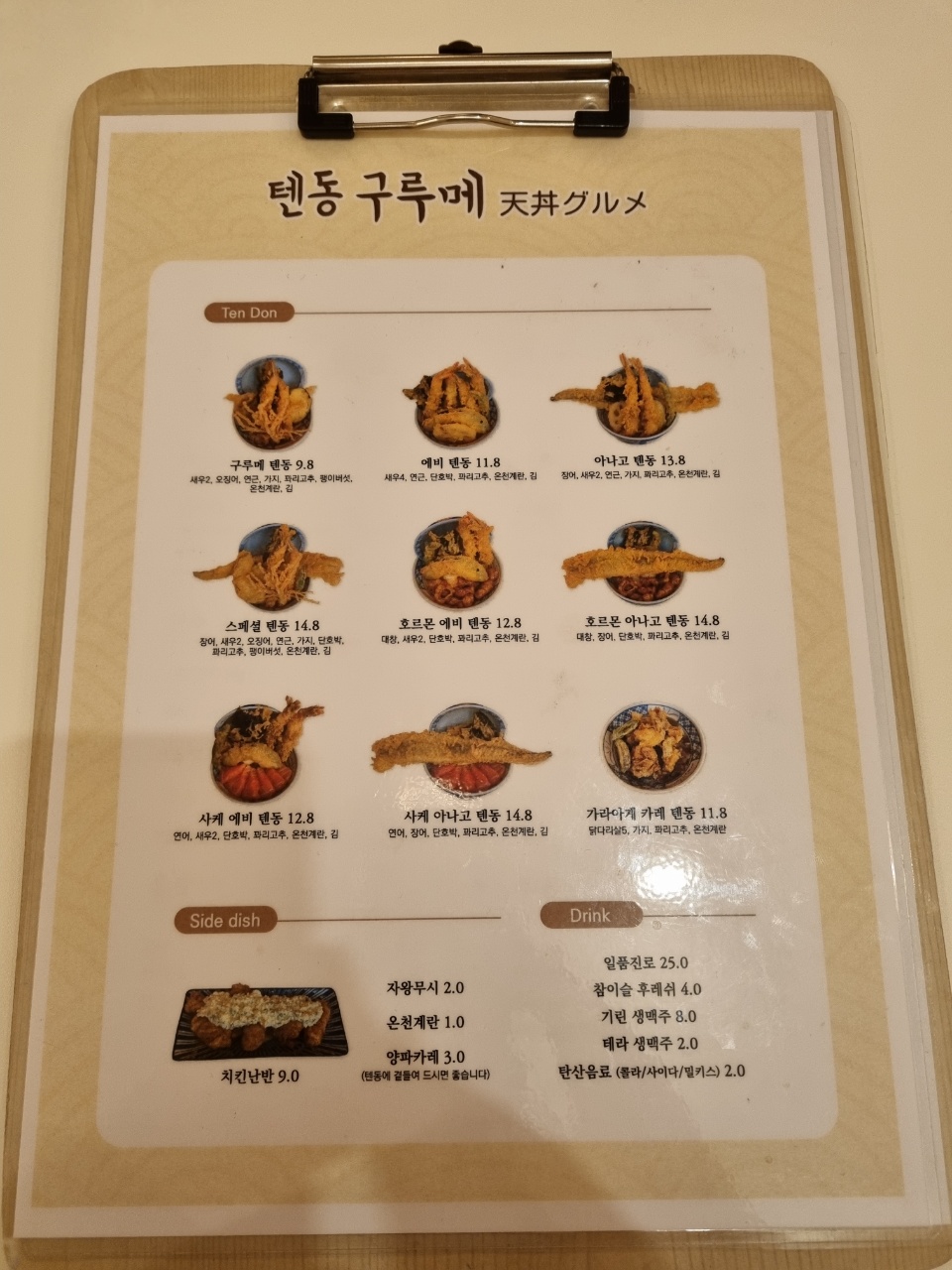 이제 텐동구루메 메뉴를 살펴볼까요~?