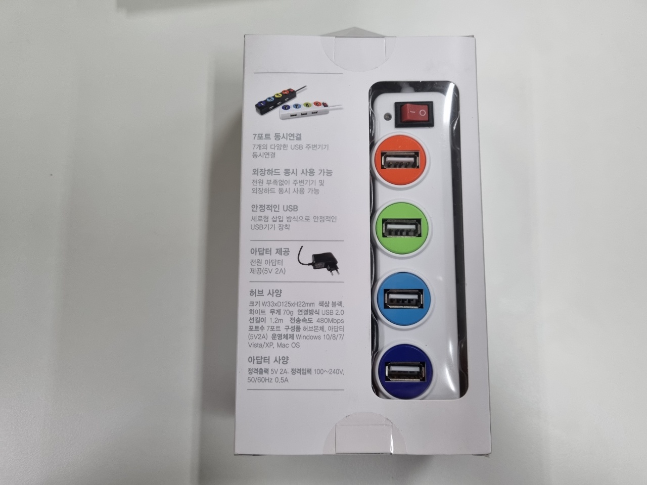전원 어답터와 7포트 유에스비 허브가