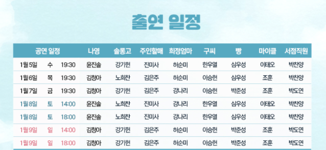 저는 1월 6일 목요일날 뮤지컬 관람을 했어서