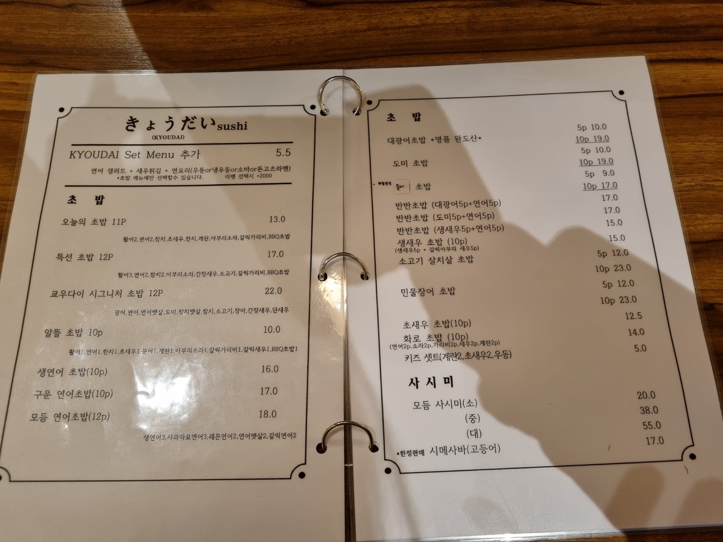 소사벌 초밥 맛집, 쿄우다이 메뉴는?