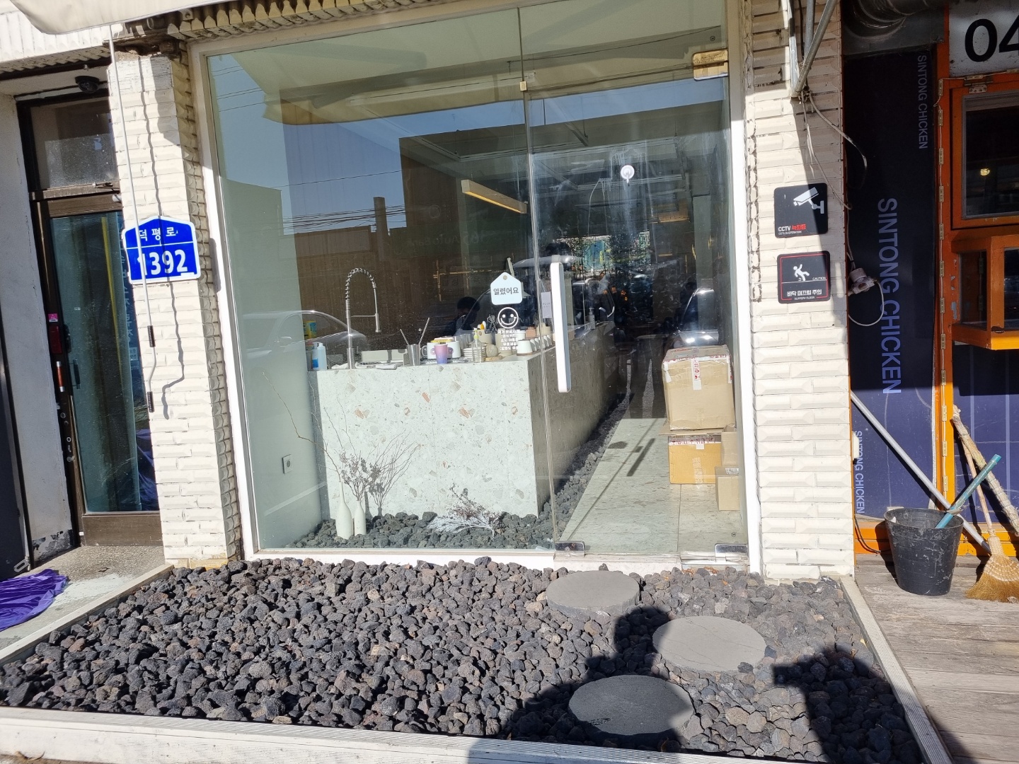 그래서 이 돌 자갈들이 카페 입구에 있다!
