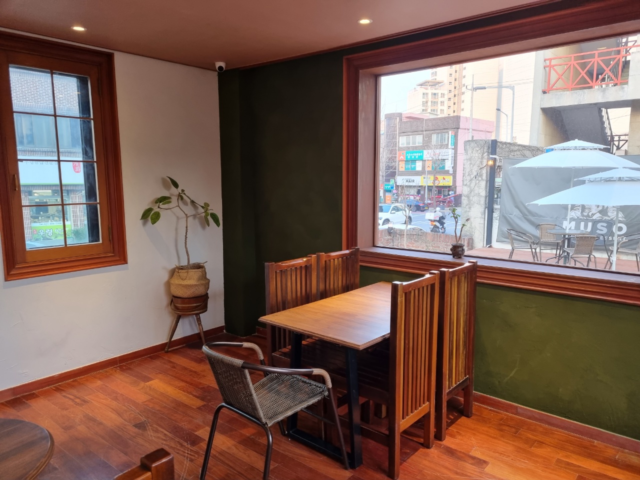 그리고 창 밖으로는 외부 테라스 좌석들이