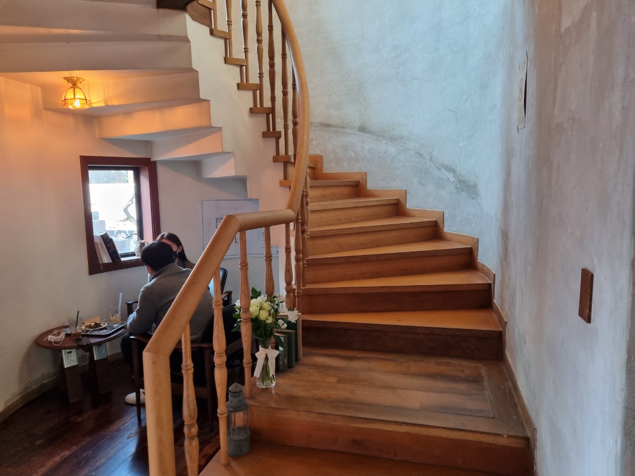 계단 옆 좌석은 둘만 있는 공간이라