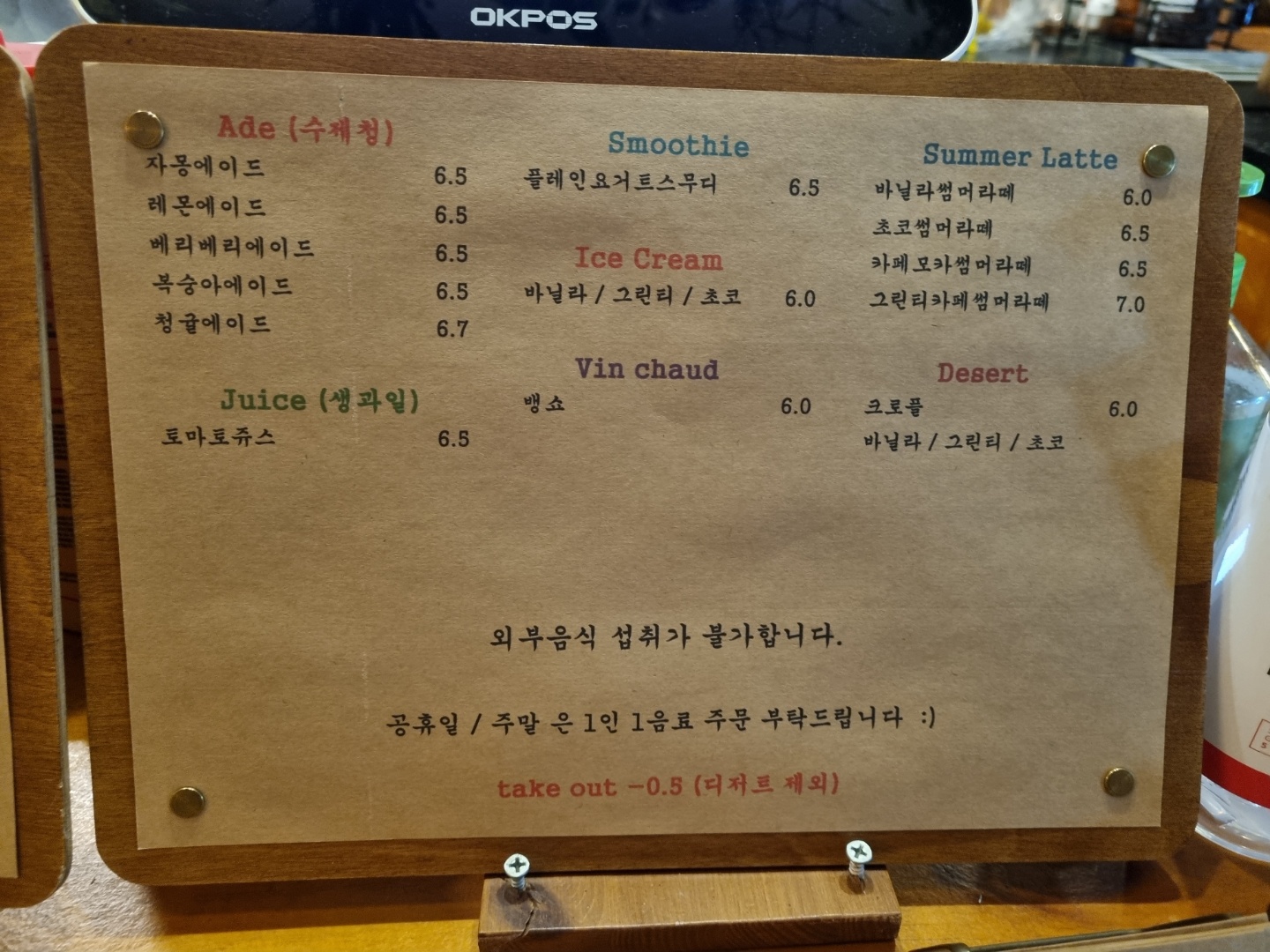 테이크아웃을 하게 되면 -0.5!!!