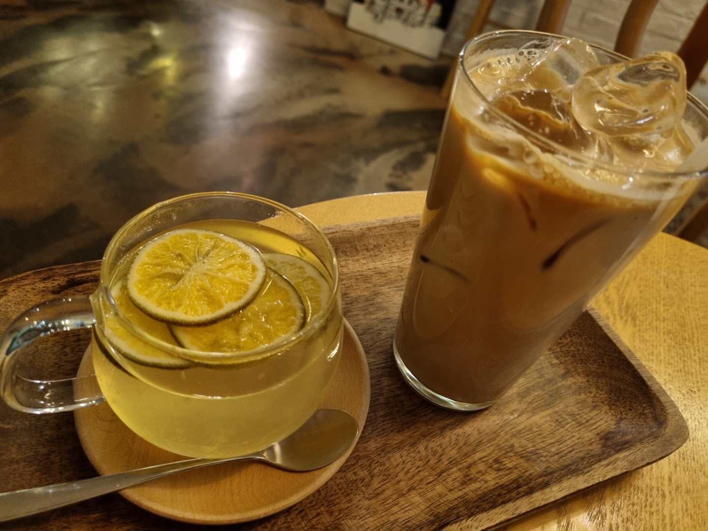 따뜻한 청귤차와 아이스 바닐라라떼를