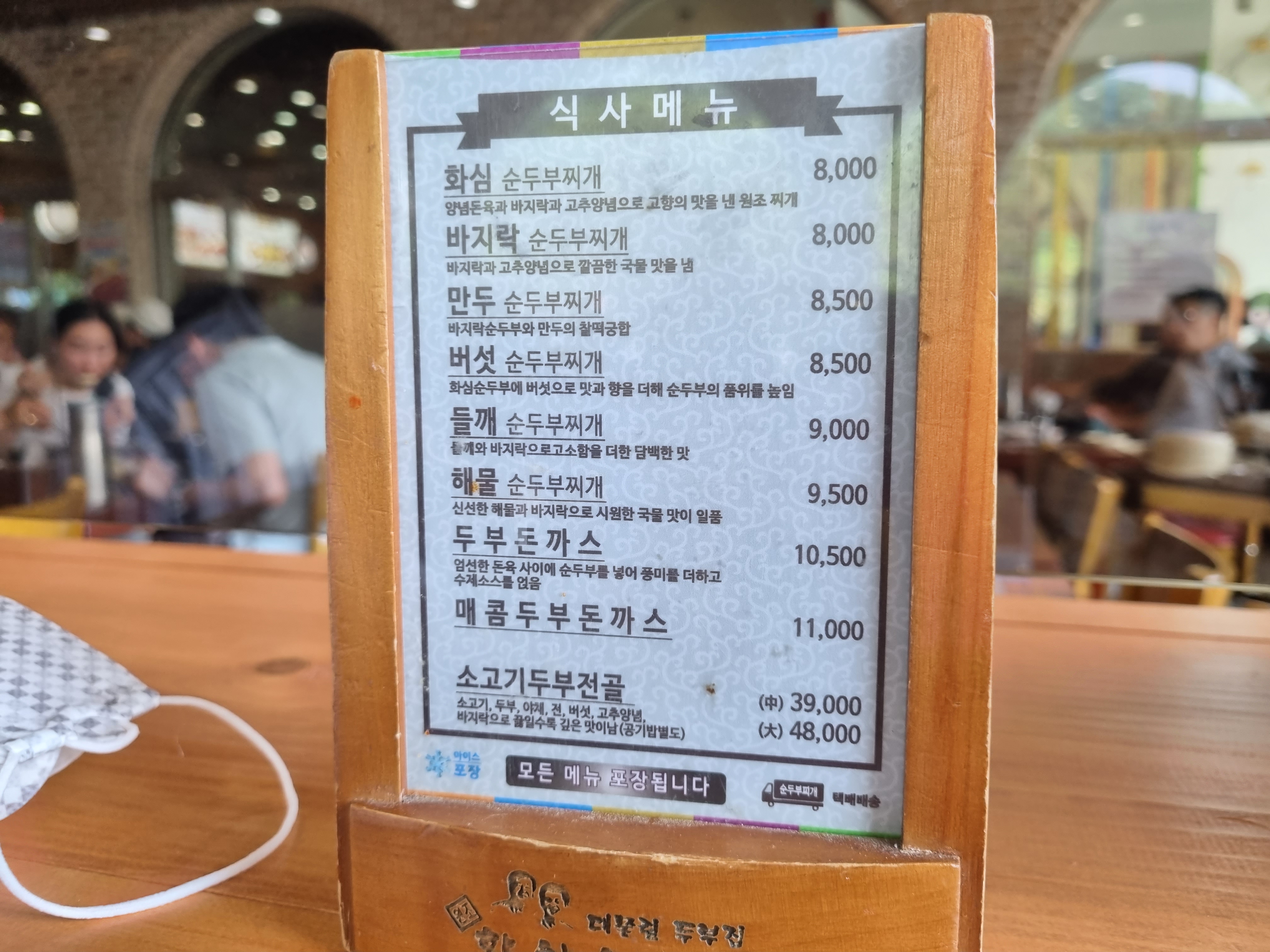 그럼 이제 전주 화심순두부 메뉴를 살펴볼까요?