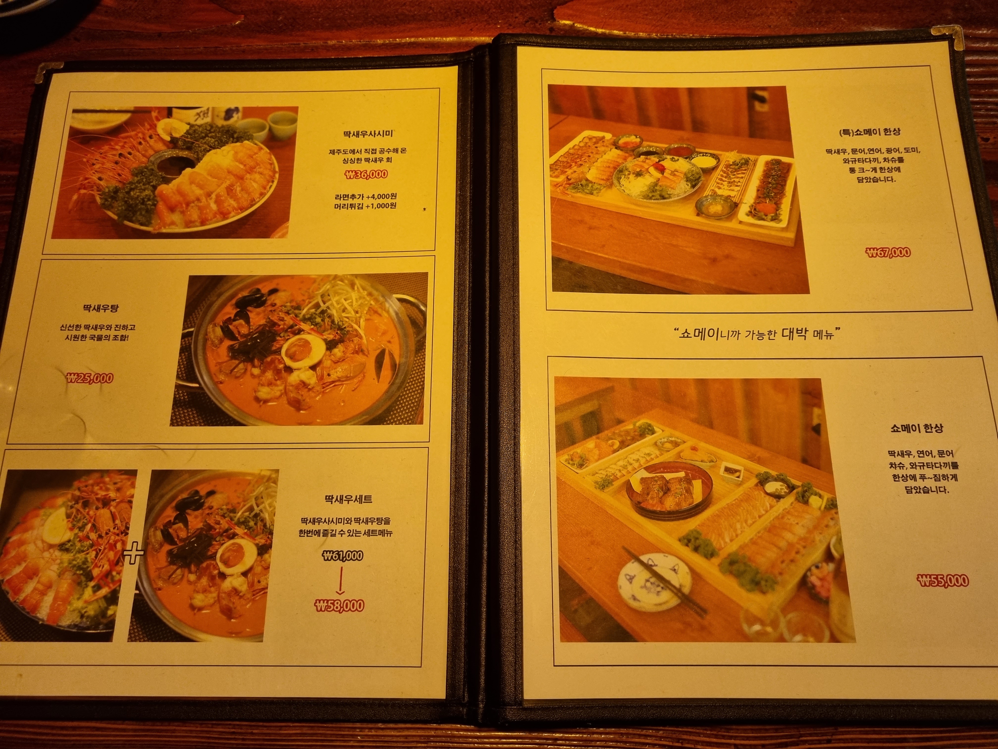 그럼 이제 쇼메이 메뉴를 살펴볼까요?!