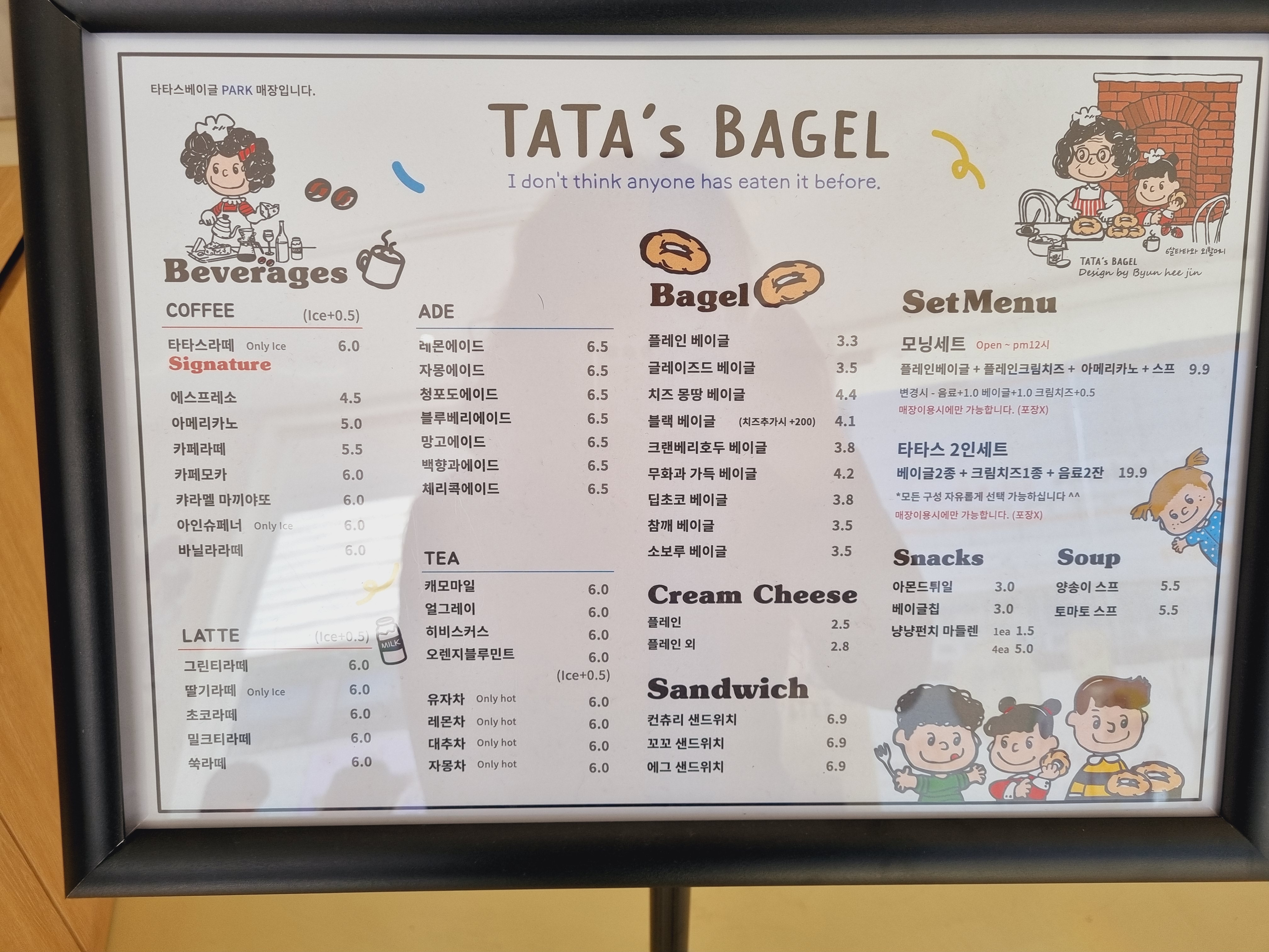 그리고 이제 제일 중요한 타타스베이글 메뉴를