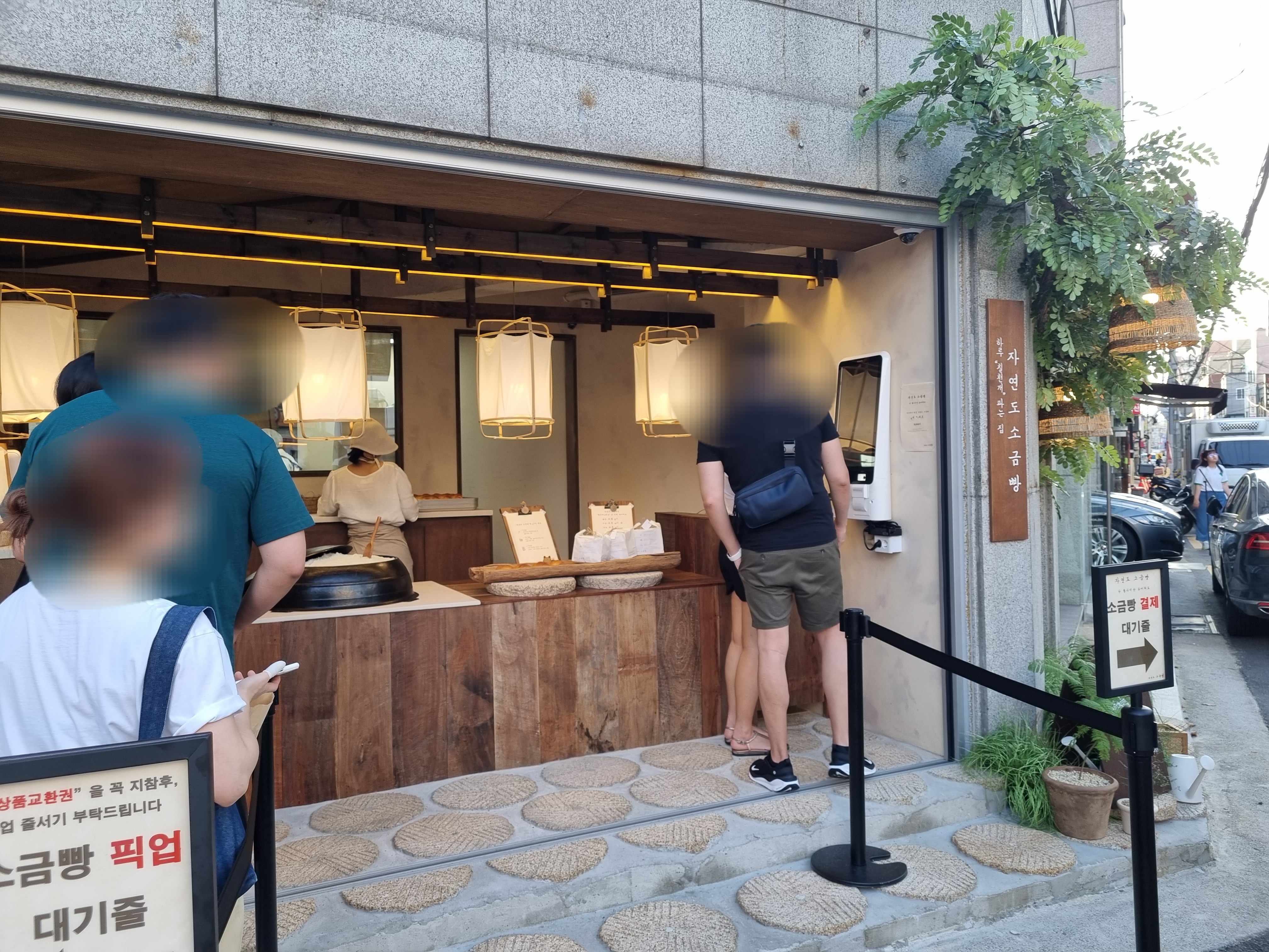 줄을 서 차례대로 소금빵을 받아야돼요ㅎㅎ