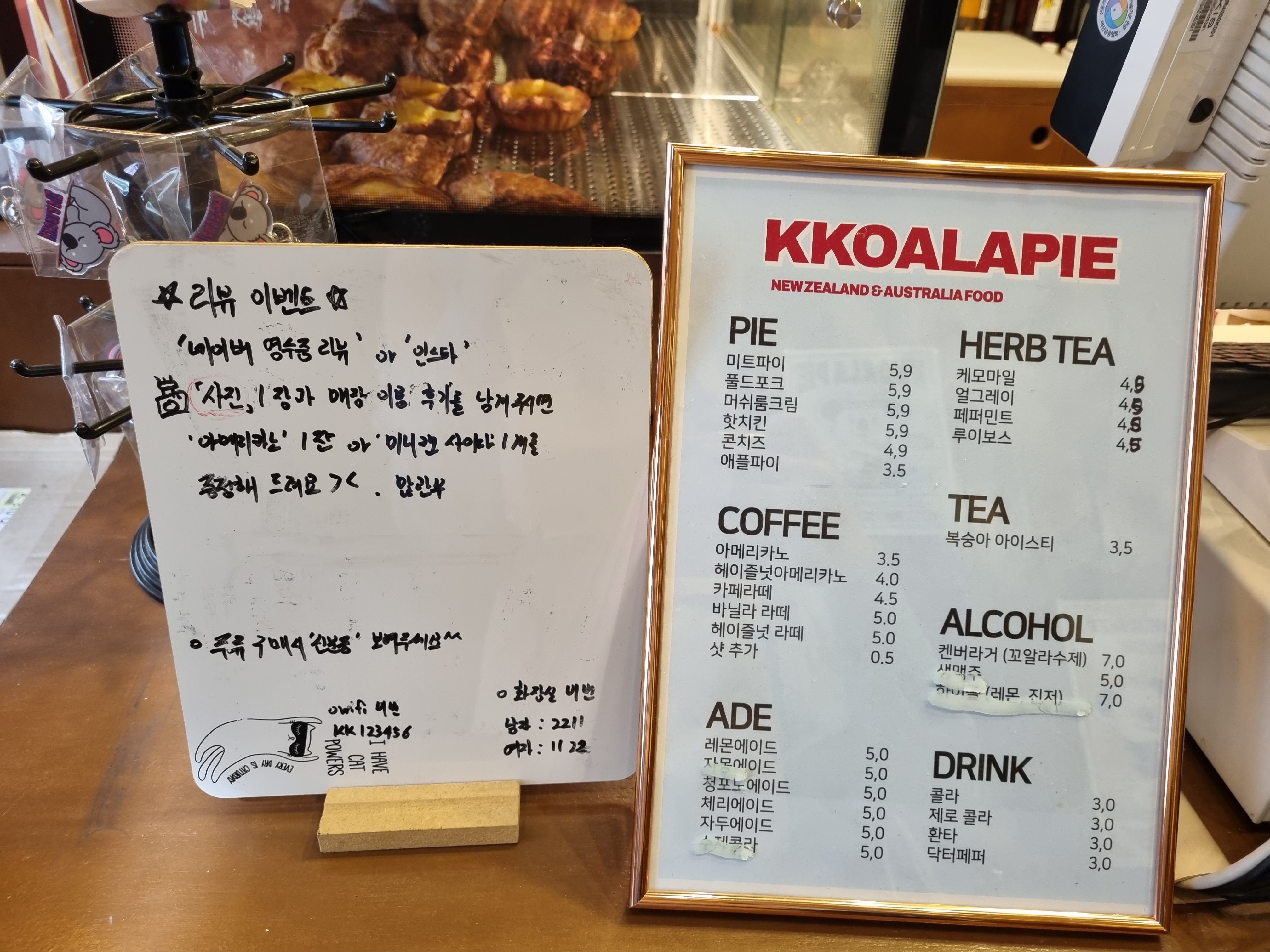 그럼 이제 꼬알라파이 메뉴판을 보실까요?