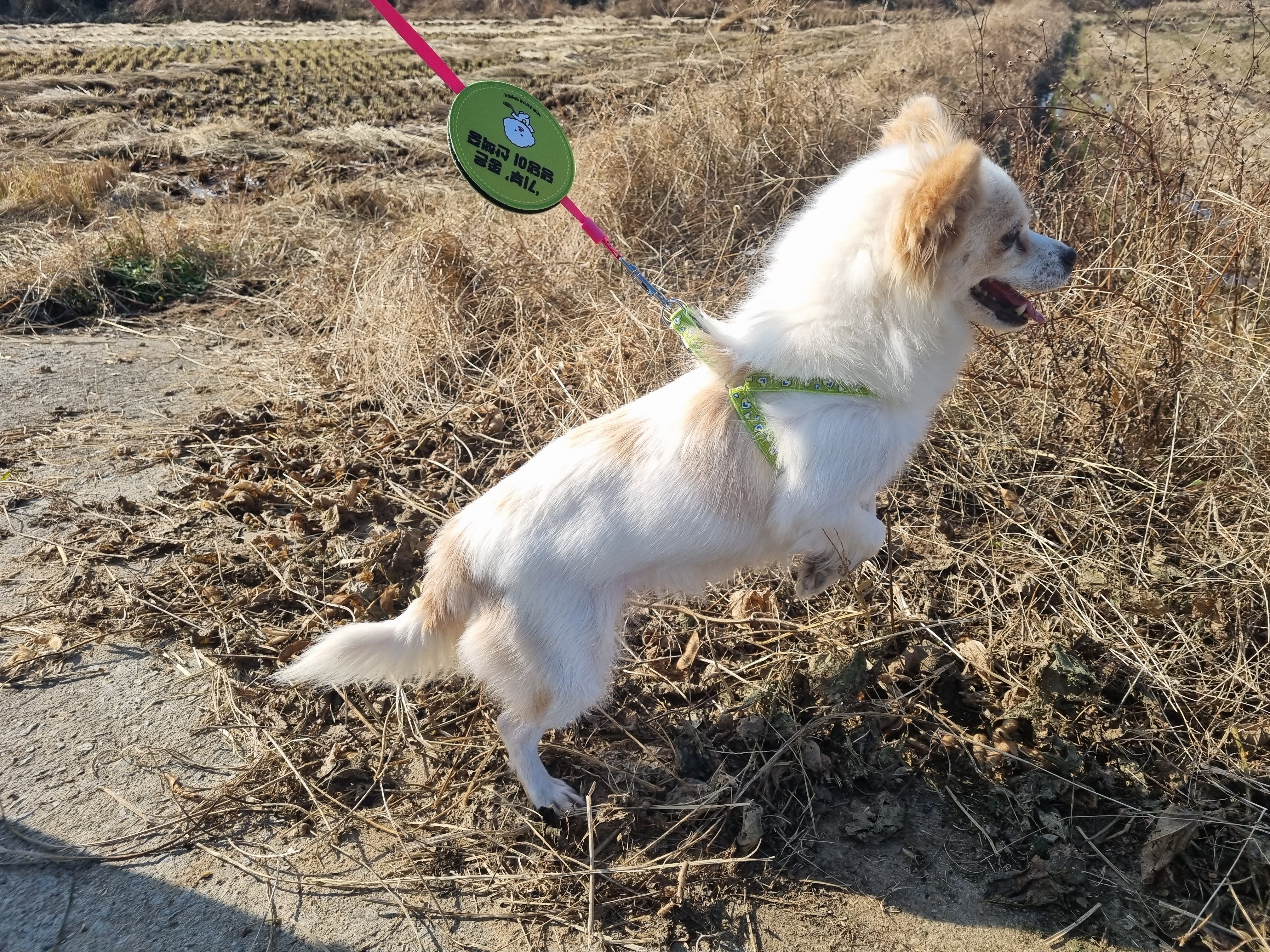 우리 제롱이 리드줄이 핫핑크색이라