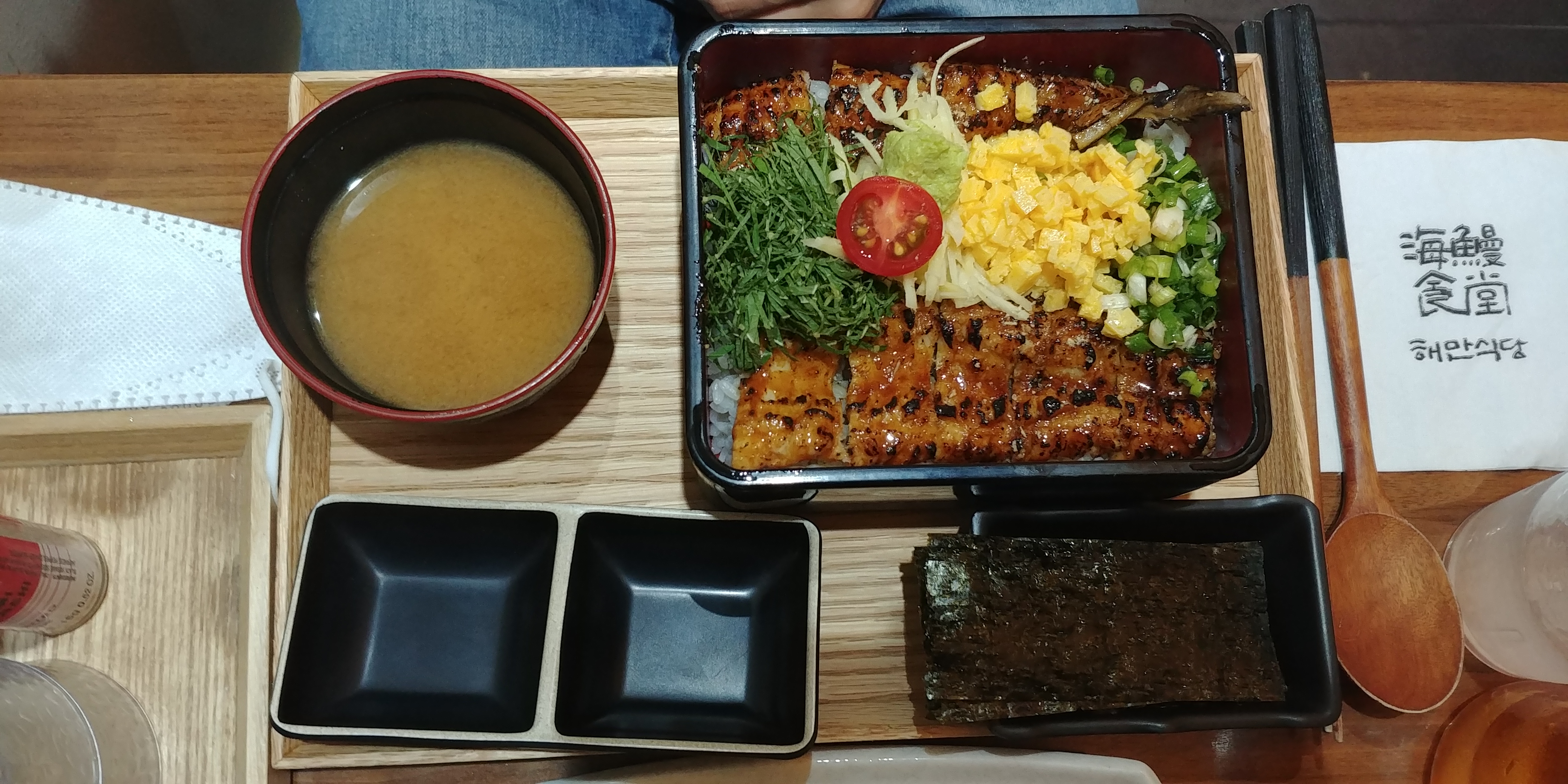 장어덮밥, 된장국, 김