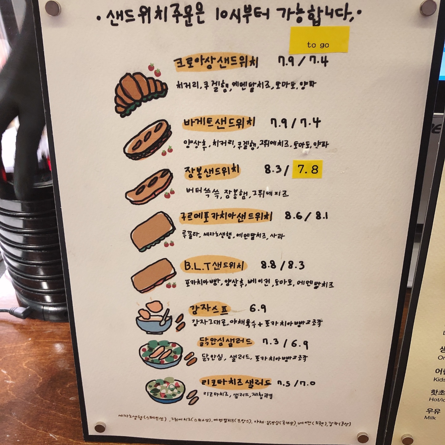 ▶ 다음은 샌드위치 메뉴판이에요!