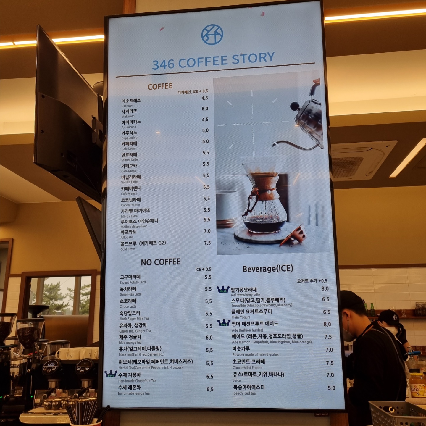 ▶ 다음은 346 커피스토리 카페의 메뉴판이에요
