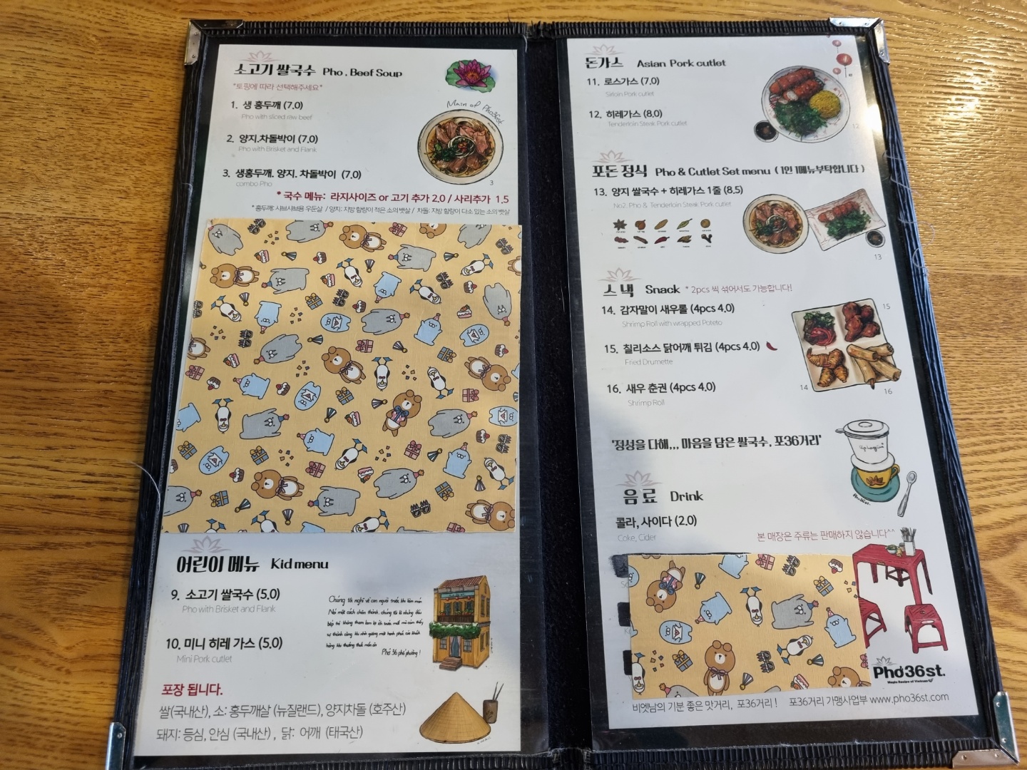 이제 포36거리 메뉴판을 살펴볼까요?