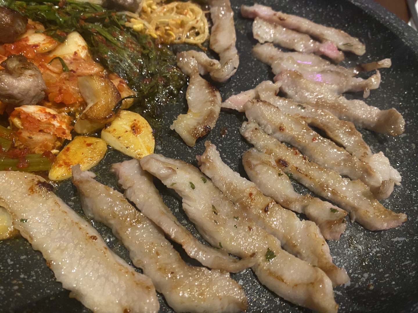 흑돼지고기 불판위로 올라갑니다~!