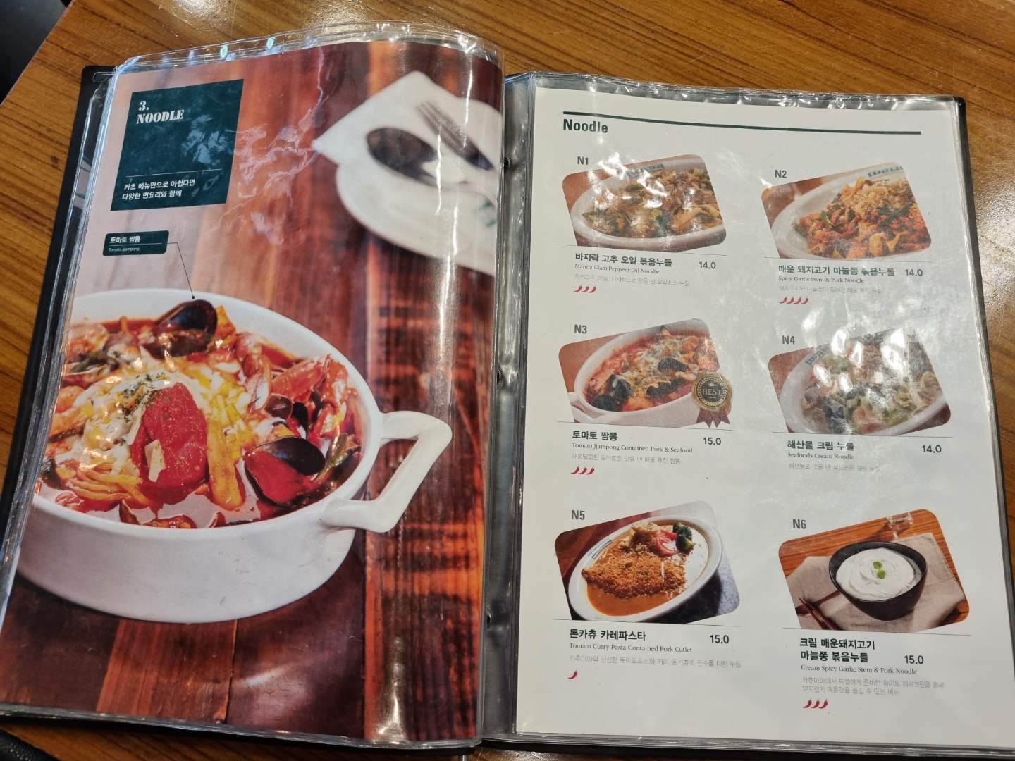 크림 매운돼지고기 마늘쫑 볶음누들 15.0