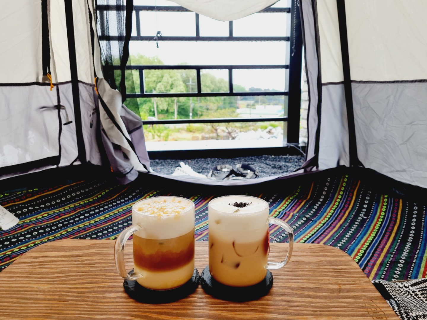 커피를 마실 수 있는 텐트 좌석이 있는데요!